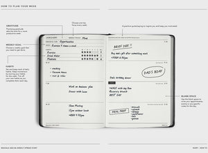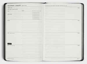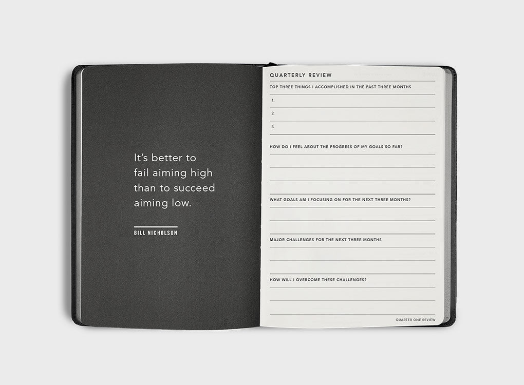 Also within the diary are monthly calendar pages, quarterly reviews, and a monthly balance sheet to keep track of your finances. The sleek, minimal design makes this diary appropriate for any time, place or mood. See the full list of features below.